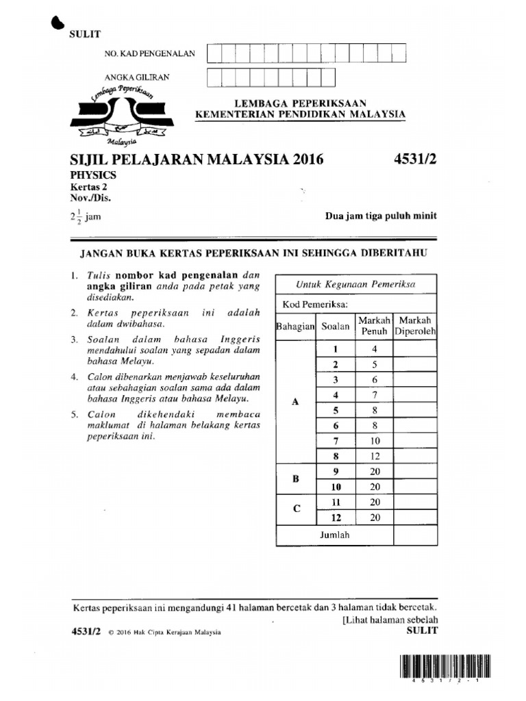 Soalan Fizik Spm Sebenar 2016. Fizik spm 2019 (kertas 1, kertas 2, kertas 3, jawapan k1, jawapan k2, . Koleksi soalan peperiksaan percubaan ramalan latihan via.