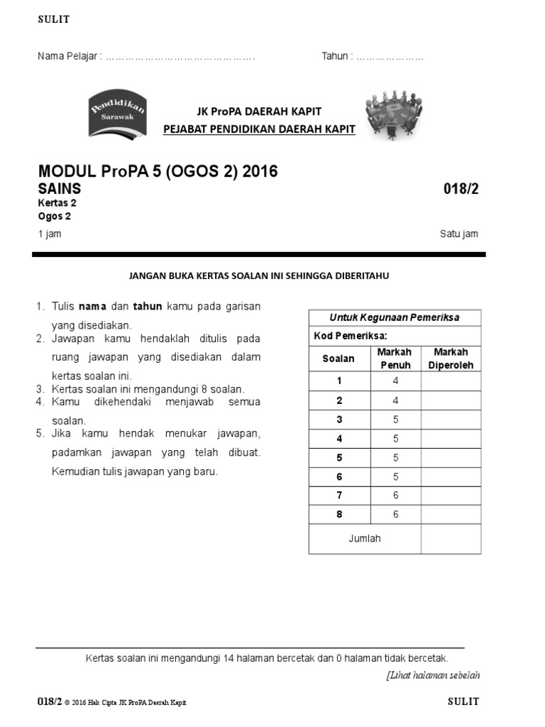 Soalan sains upsr 2019 kertas 2 Koleksi soalan, latihan, nota, modul sains tahun 6 + jawapan (1). Bahasa melayu, bahasa inggeris, matematik, sains. Sains (kertas 2) tahun 6